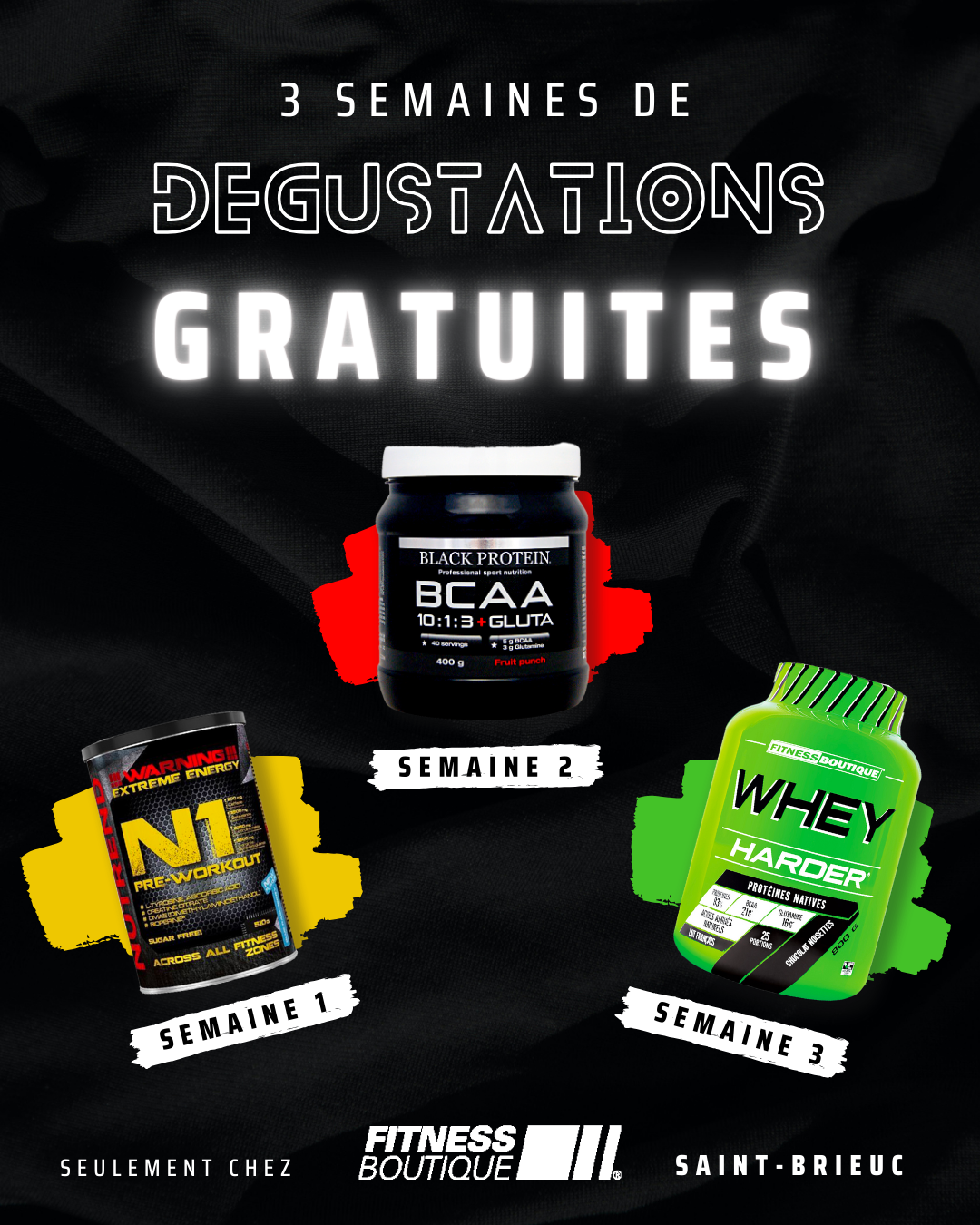 Design of visualsĀ for social networks such as Instagram and Facebook, specifically to promote the Fitness Boutique Saint Brieuc store's equipment and sports nutrition products.